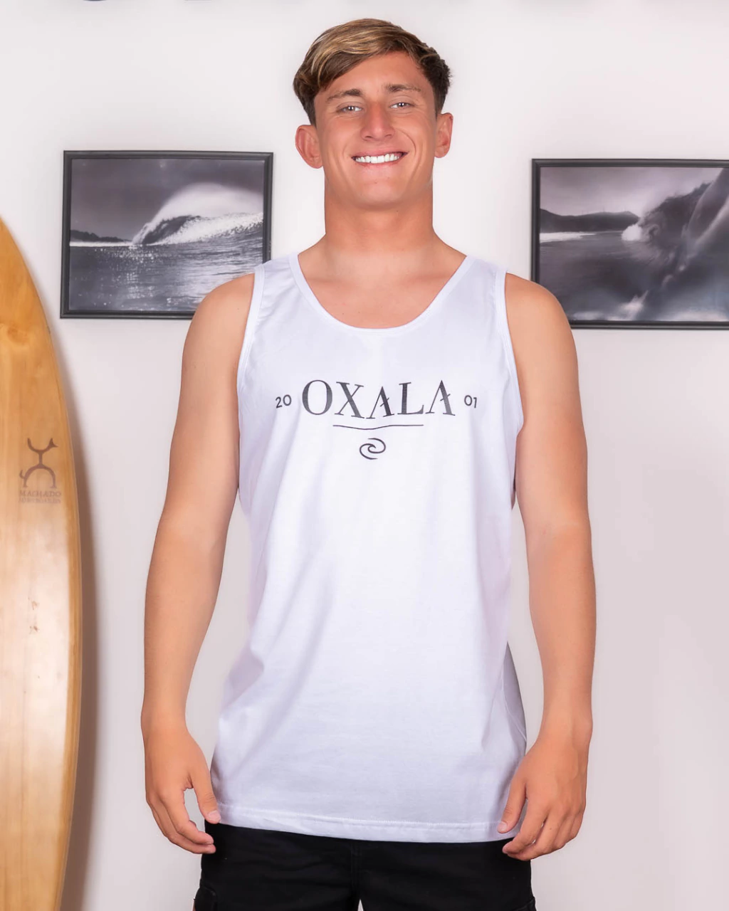 Musculosa Oxala confeccionada en tejido de punto de algodón y poliéster 24/1. Las costuras reforzadas brindan seguridad y durabilidad, mientras que la estampa se realiza con pinturas a base de agua, contribuyendo al cuidado del medio ambiente. Su diseño de moldería clásica se adapta perfectamente al cuerpo, convirtiéndola en una opción versátil para cualquier ocasión.