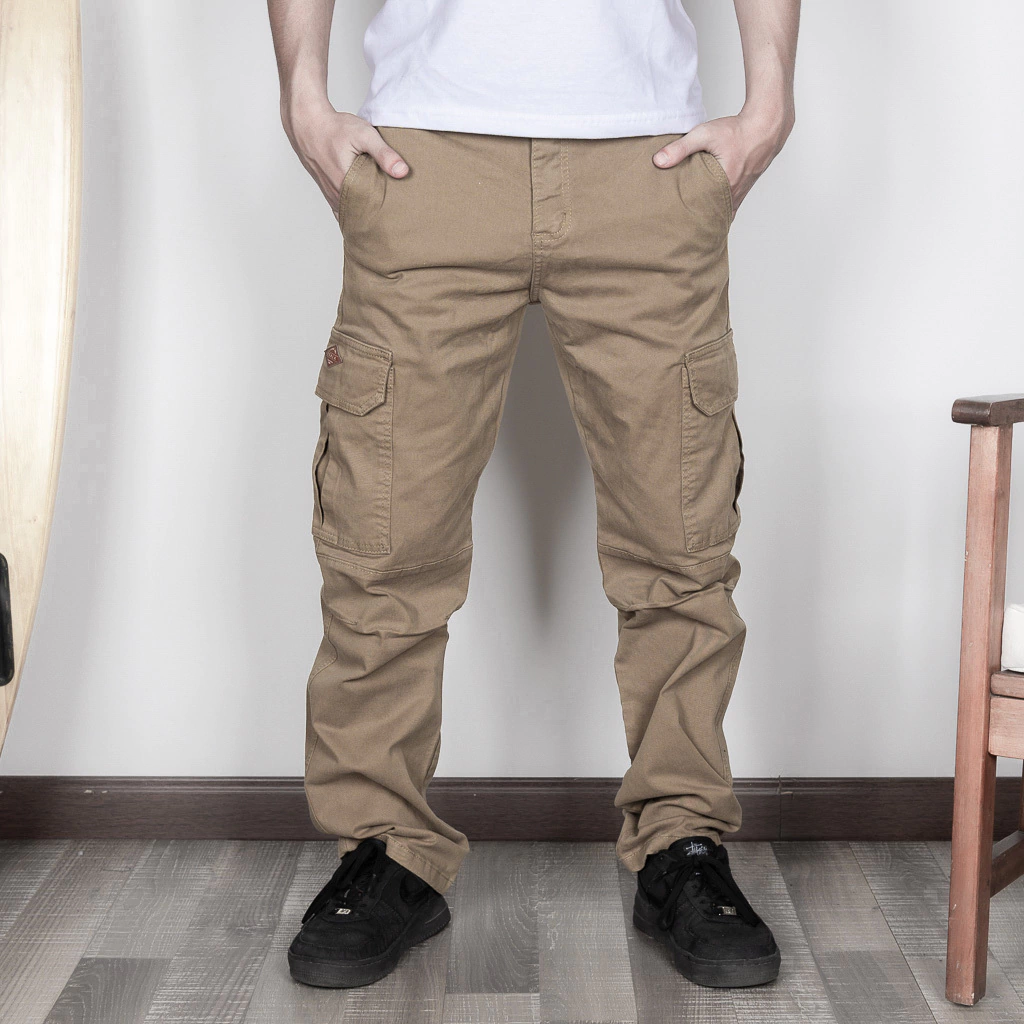 Pantalon Cargo gabardina elastizada ,tela construida Sarga 3x1, a base de algodón 98 % y 2 % elastano. Exclusivo diseño con dos bolsillos laterales y dos traseros y dos laterales a la altura de la rodilla con fuelle. Prenda procesada en lavadero (stone wash ). Atraques de seguridad en costuras críticas.